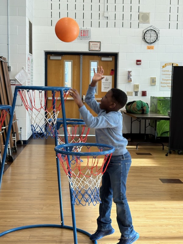 During a recent A.P.E. lesson, students worked together to complete a structured warm-up with a focus on balance and body control. This helped prepare their bodies for movement while reinforcing foundational motor skills. Students then participated in a parachute activity, which encouraged teamwork and provided practice in following multi-step directions and coordinating movements with peers.