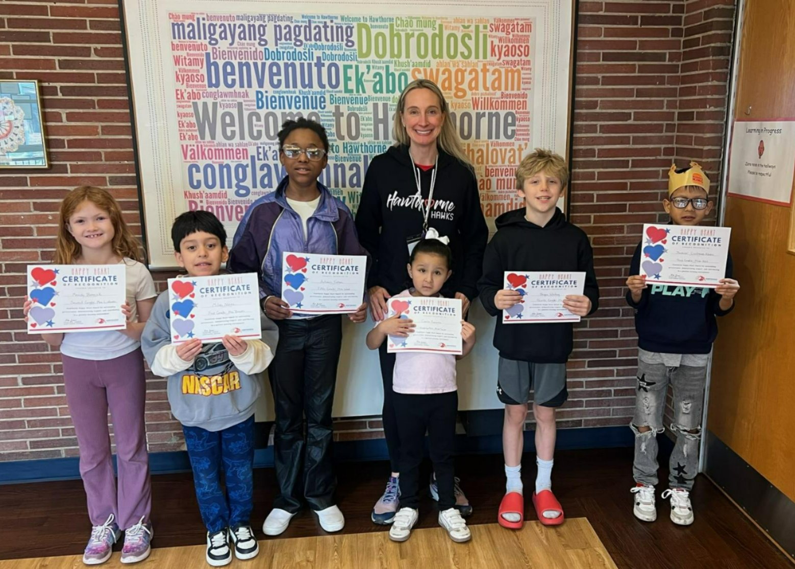 The Happy Heart Award is a recognition ticket given to students who go above and beyond to demonstrate the Hawthorne Way during the school day. Students who earn this will receive a ticket with their name on it, the staff member who recognized them, and the reason they were recognized. The recognition portion will go home to celebrate with family.