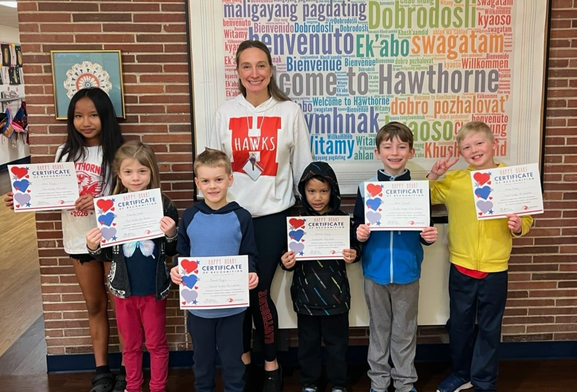 Students at Hawthorne Elementary School are always learning and growing. One of the things we pride ourselves on at Hawthorne is the work we do to ensure students understand, demonstrate, and reinforce schoolwide expectations. At Hawthorne, students learn about the Hawthorne Way during the first week of school with Mrs. Zimmer. During the year, we work to reinforce the things we learn about the Hawthorne Way. The Happy Heart Award is a recognition ticket given to students who go above and beyond to demonstrate the Hawthorne Way during the school day. Students who earn this will receive a ticket with their name on it, the staff member who recognized them, and the reason they were recognized. The recognition portion will go home to celebrate with family.