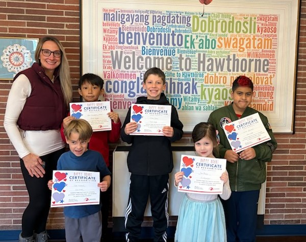 Students at Hawthorne Elementary School are always learning and growing. One of the things we pride ourselves on at Hawthorne is the work we do to ensure students understand, demonstrate, and reinforce schoolwide expectations. At Hawthorne, students learn about the Hawthorne Way during the first week of school with Mrs. Zimmer. During the year, we work to reinforce the things we learn about the Hawthorne Way. The Happy Heart Award is a recognition ticket given to students who go above and beyond to demonstrate the Hawthorne Way during the school day. Students who earn this will receive a ticket with their name on it, the staff member who recognized them, and the reason they were recognized. The recognition portion will go home to celebrate with family.