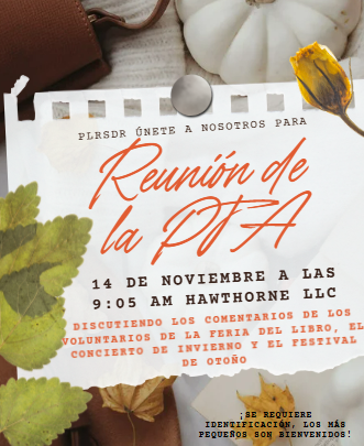 November 10-14: PTA Book Fair November 11: Veterans Day November 14: PTA Meeting in LLC @ 9:05