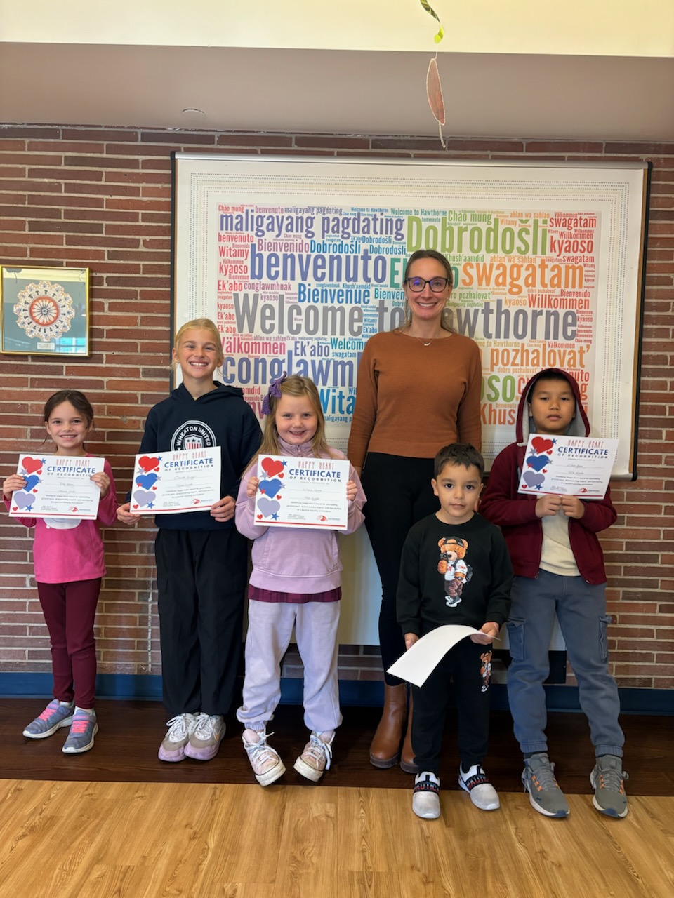 We are thrilled to share some exciting news—our students have earned over 1,000 Happy Hearts! The Happy Heart Award recognizes students who go above and beyond to demonstrate the Hawthorne Way during the school day. Each award is a special ticket that includes the student’s name, the staff member who recognized them, and the reason for their recognition.