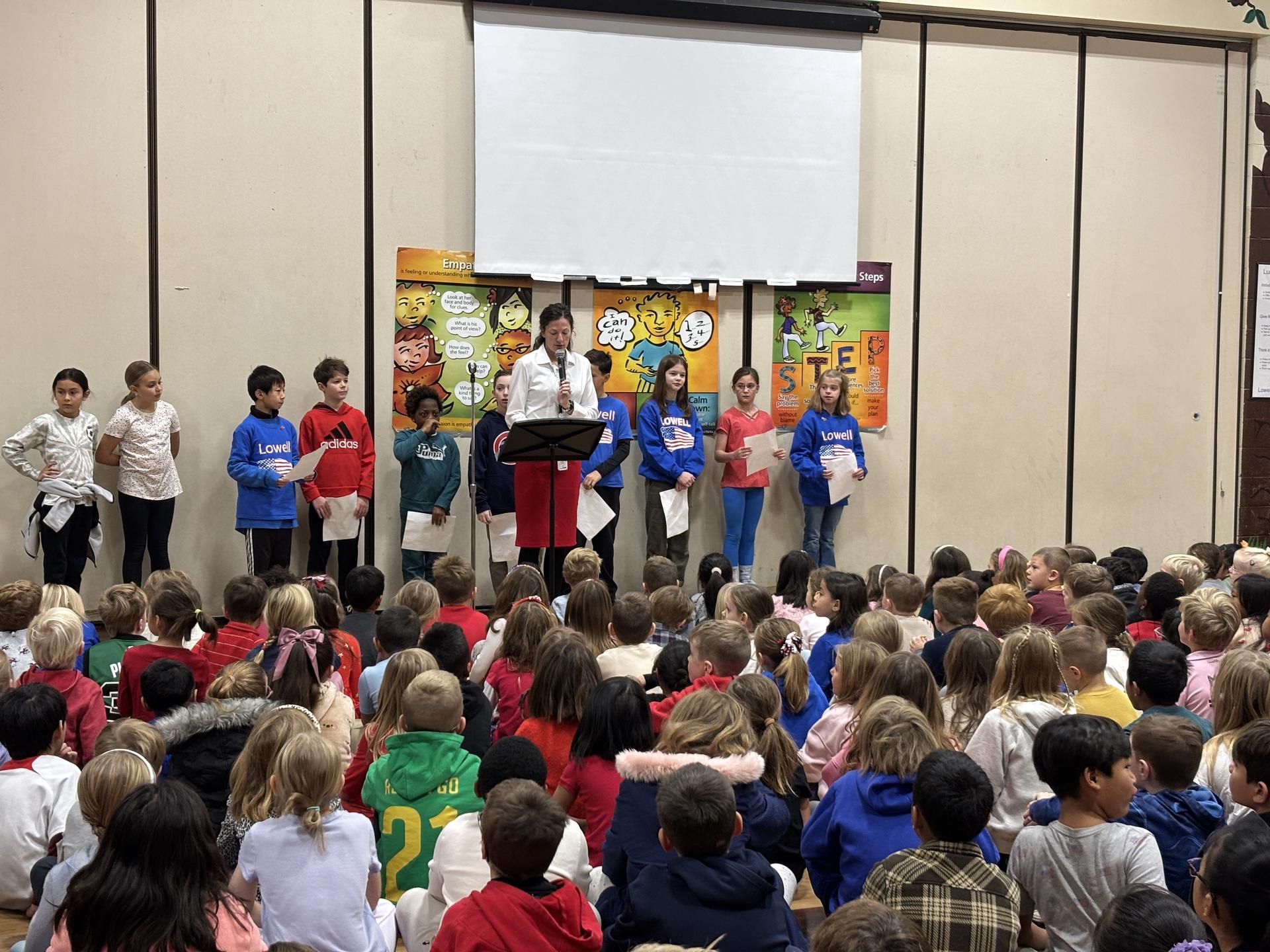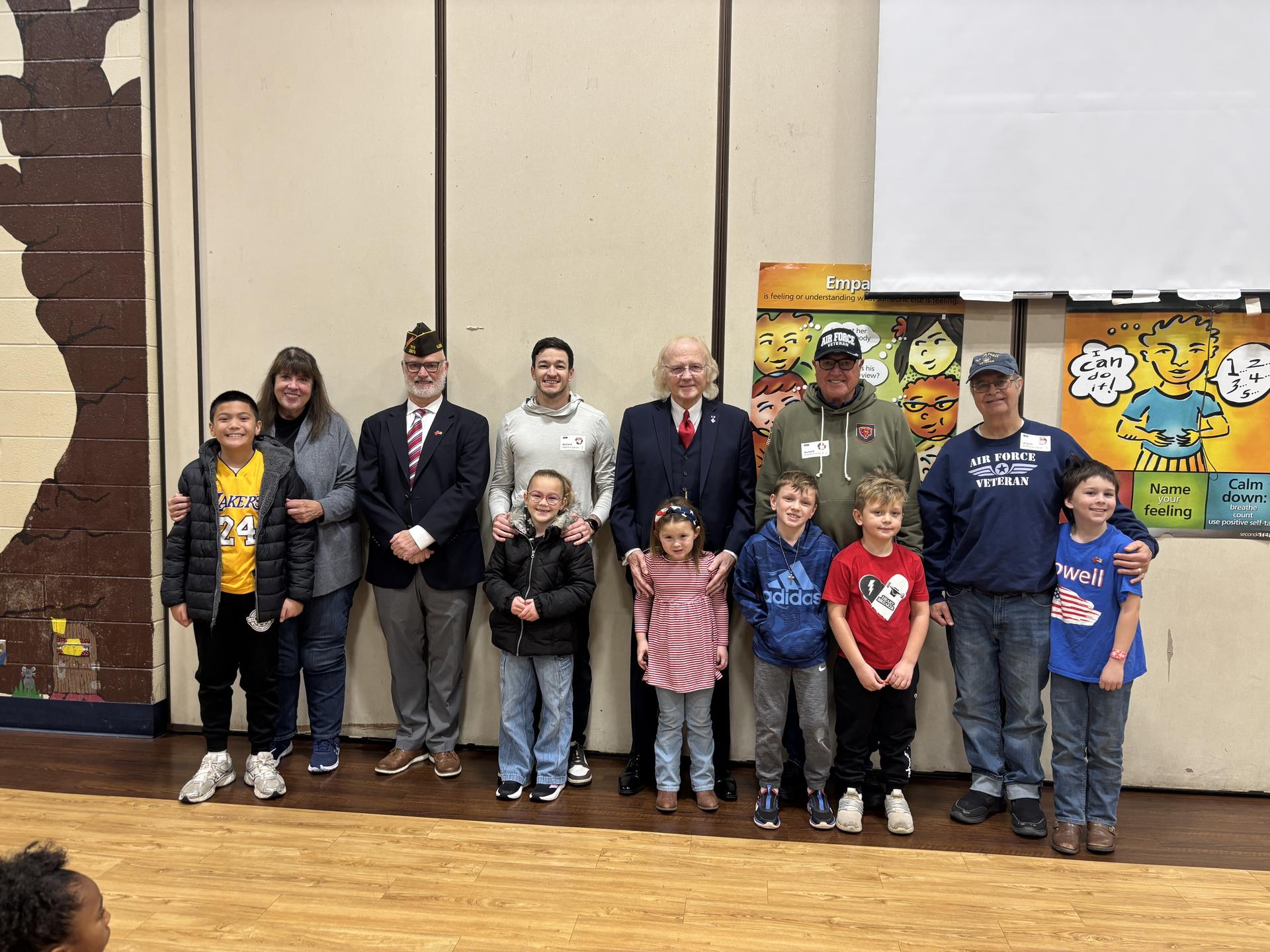 We had a wonderful time celebrating our Veterans on Tuesday! We had six Veterans attend, 5 of which are related to a current Lowell student. Mr. Hugh Boger, principal at Pleasant Hill, is a veteran of the marine corps and was our guest speaker. The student council shared information with us about what Veterans Day is and why we celebrate it and then the color guard performed. It was a wonderful time and we are truly grateful for our Veterans!