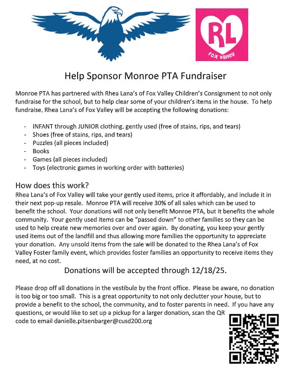 Thank you again for your support of the Monroe learning community. We are incredibly fortunate to have such engaged and caring families.