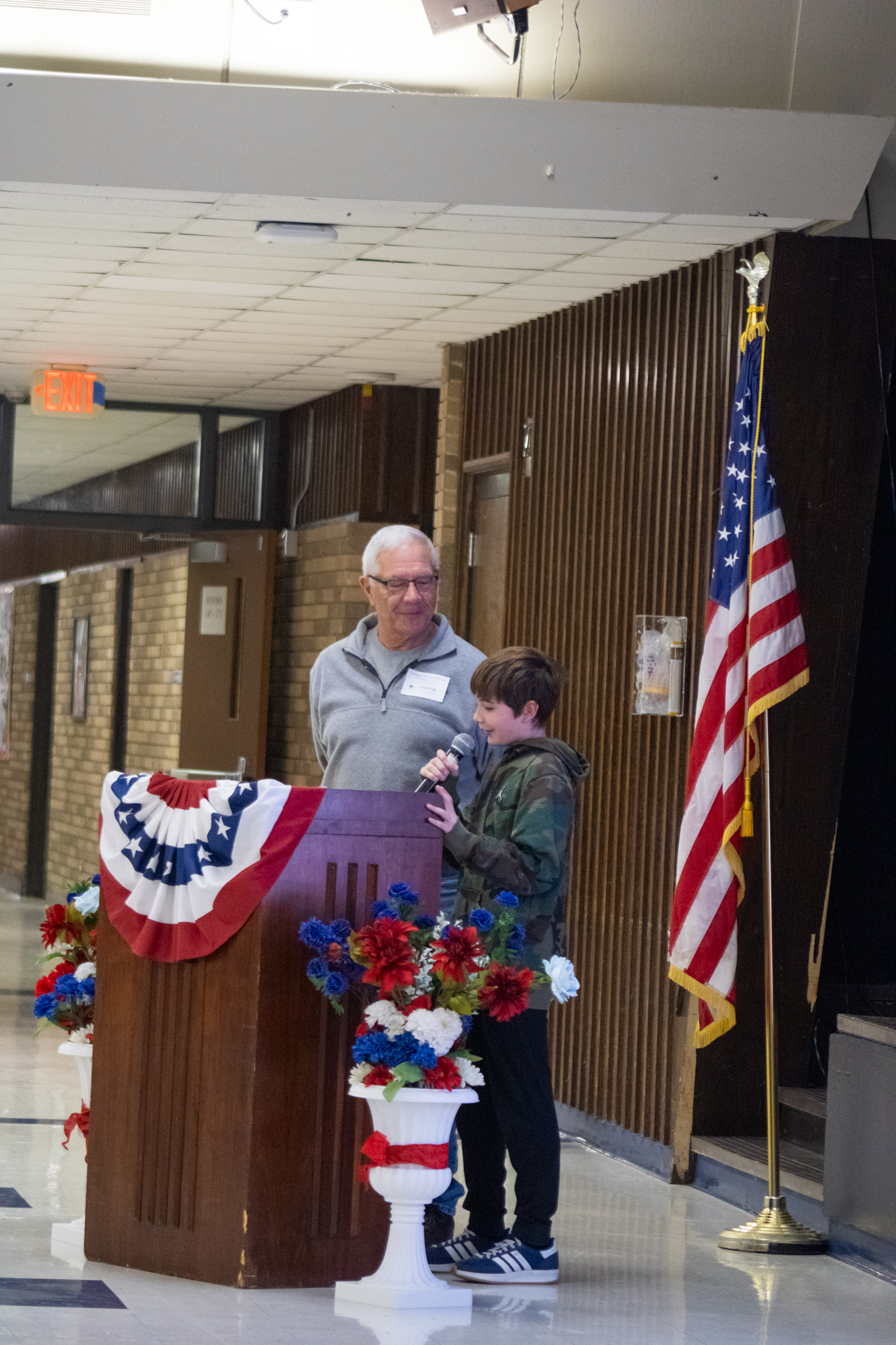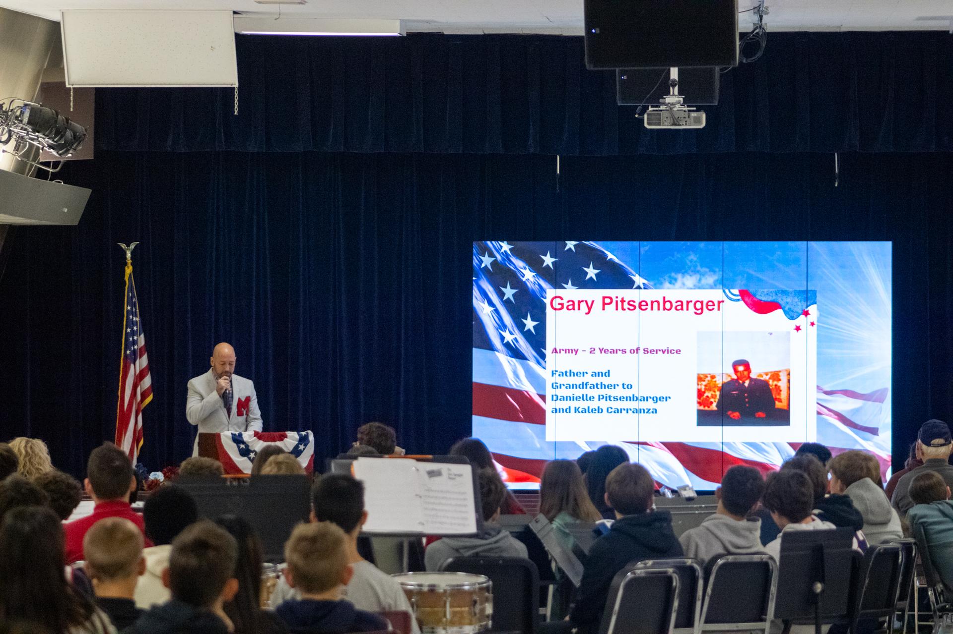 Following the breakfast, students, staff, and honored guests gathered for a ceremony with a moving speech by Monroe counselor, Lincoln Estes. Monroe Music students led in the playing of our national anthem, and students introduced their Veterans and shared thoughtful sentiments along with highlights of their service to our country.