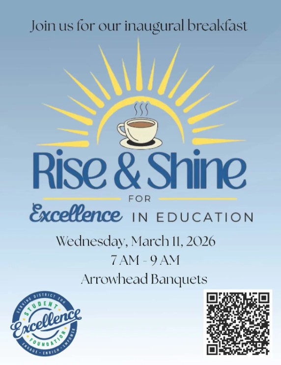 On behalf of the CUSD 200 Student Excellence Foundation, we invite you to join us for the Rise and Shine for Excellence in Education Breakfast on March 11.